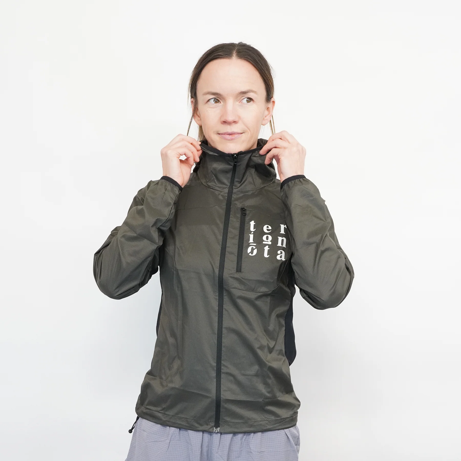 An ultralight, packable, wind and water resistant running jacket.